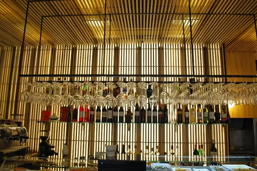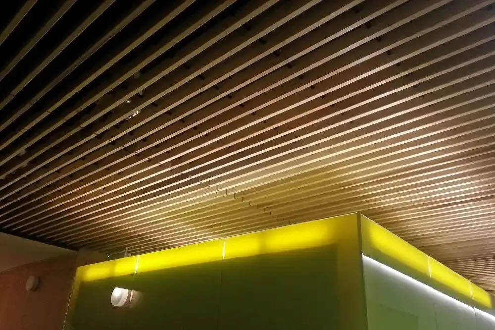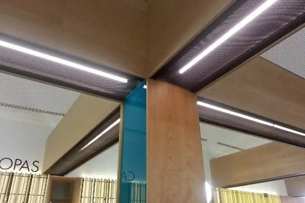 Carpintería técnica. Trabajos de decoración de locales con madera, revestimientos interiores de paramentos con tableros especiales de madera y composite, falsos techos, celosías de madera Hunter Douglas, encimeras de madera, escaleras de madera laminada, colocación de parquet, etc.