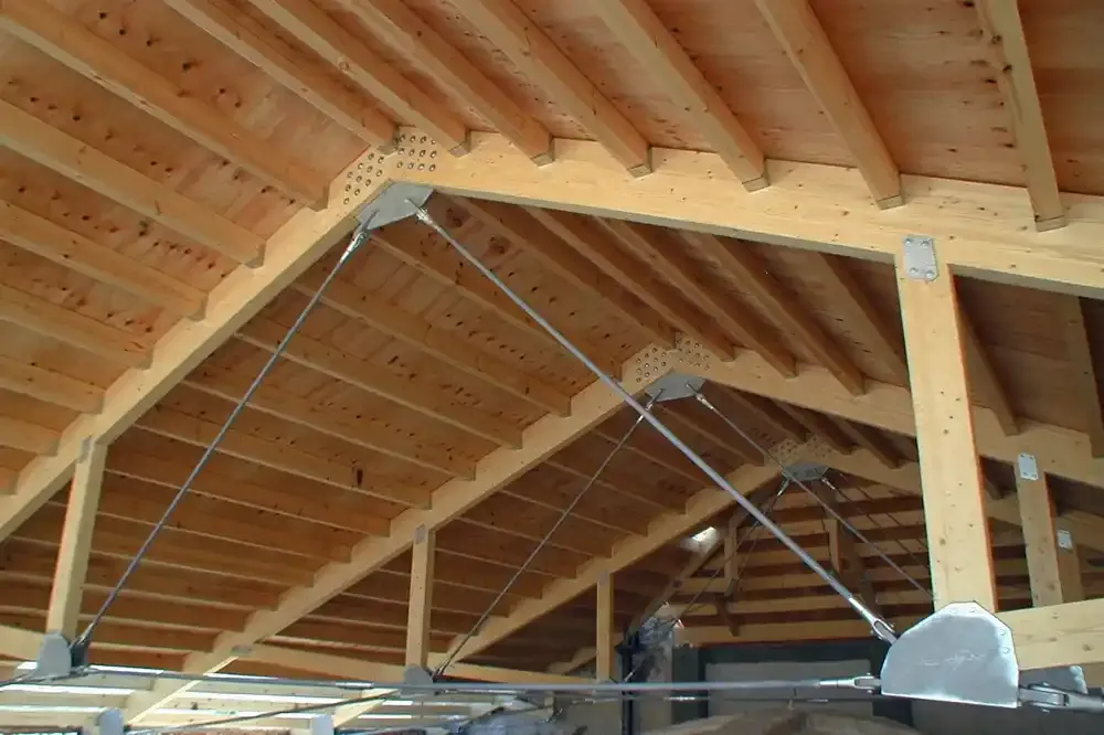 Ejecución de Cubierta con estructura de madera laminada y tablero contrachapado fenólico.