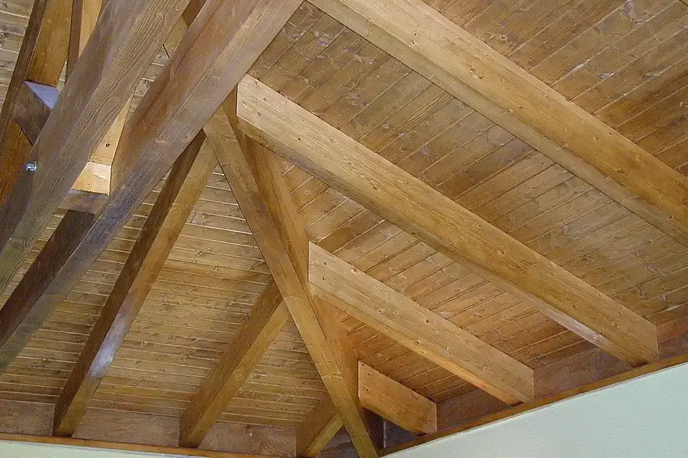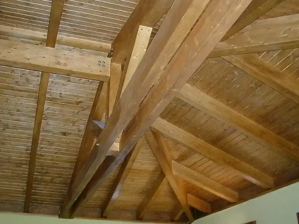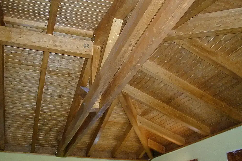 Ejecución de Cubierta con estructura de madera laminada de abeto y panel sándwich de madera.