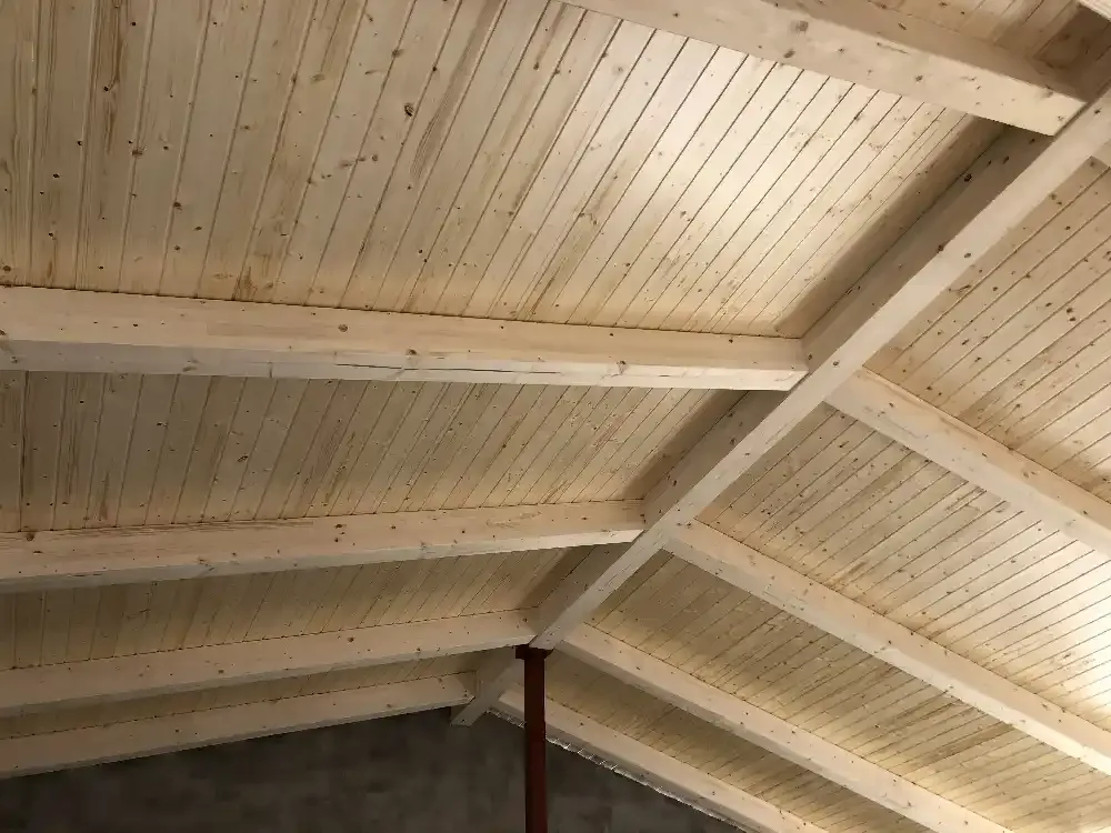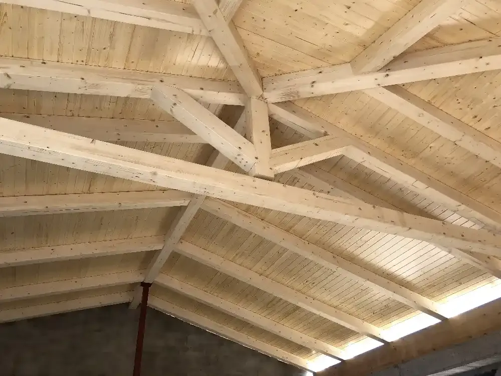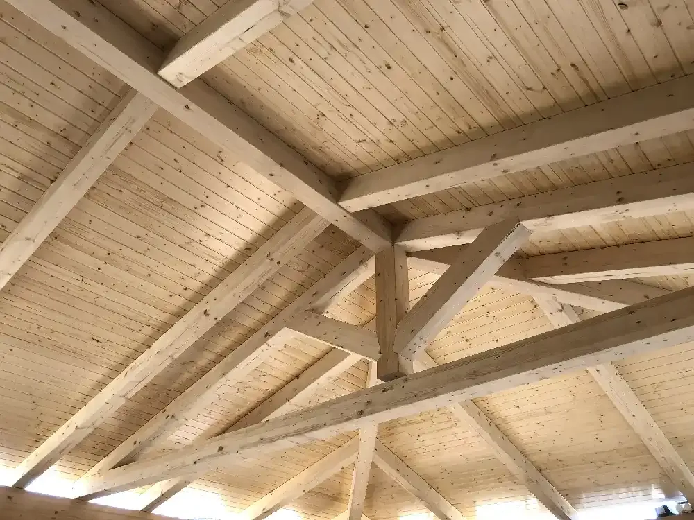 Ejecución de cubierta con estructura de madera laminada y panel sándwich prefabricado de madera.