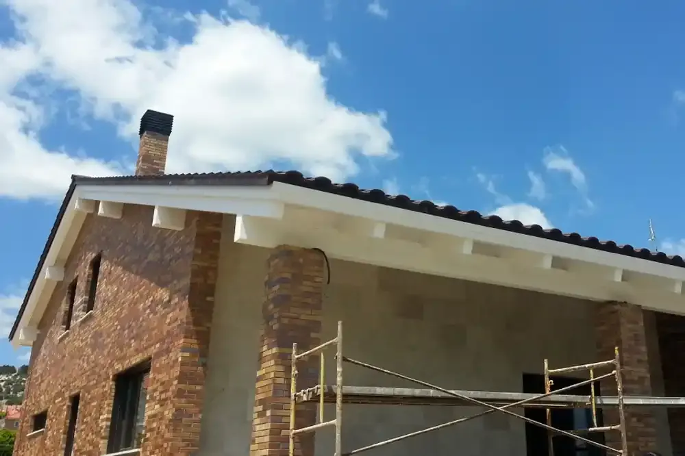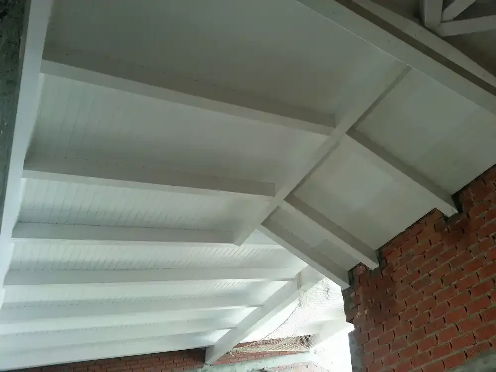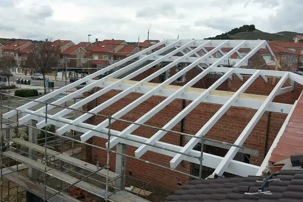 Ejecución de Cubierta con estructura de madera laminada y panel sándwich de madera.
